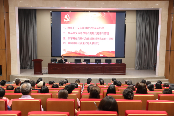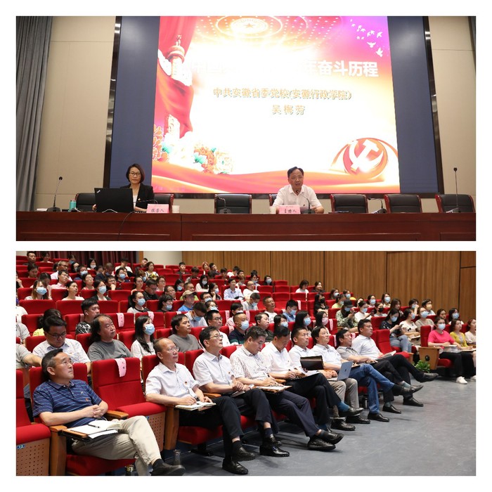 6月9日下午,安徽省委党校(安徽行政学院)社会和生态教研部主任、教授吴梅芳应邀在太阳官网开展题为“中国共产党的百年奋斗历程”专题报告。报告会由校党委书记周明洁主持。学校党史学习教育领导小组全体成员、巡回指导组全体成员,全体教职工党员,学生党员代表,民主党派成员、校知联会会员参加会议。