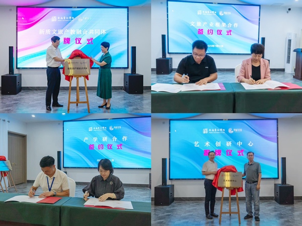 在签约仪式上,双方共同揭牌了“新质文旅产教融合共同体”和“艺术创研中心”,签订政产学研用合作协议,充分发挥suncitygroup太阳新城官网的学科优势和铜陵犁桥水镇的资源禀赋,以“文旅融合赋能乡村振兴”为目标,通过IP打造、产品开发、品牌推广、文旅演绎等系统性服务,推动犁桥水镇文旅产业的高质量发展。
