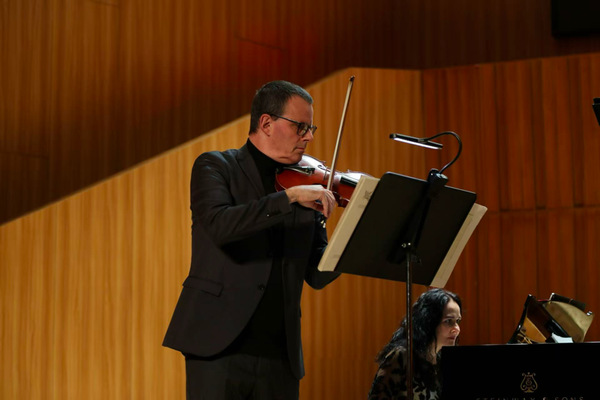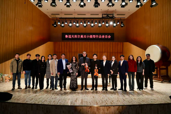 当晚,由荷兰小提琴大师鲁道夫·库尔曼领衔的双小提琴作品音乐会在音乐南楼音乐厅奏响。库尔曼教授作为传奇大师海菲兹的关门弟子、前荷兰皇家音乐厅管弦乐团首席,联袂旅瑞青年小提琴家沙利文及钢琴家阿泰娜·卡特,精彩演绎了莫扎特与莫什科夫斯基的经典作品。三位音乐家技艺精湛、配合默契,赢得了在场师生的热烈反响。