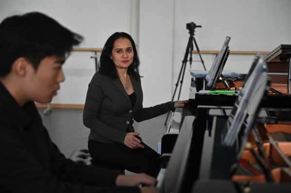 作为本次国际交流活动的重要组成部分,学校“四季音乐会·乐坛来风”系列同日呈现了两场高水准的艺术实践。当日上午,瑞士籍钢琴家、韦尔比耶音乐节学院钢琴家、苏黎世艺术大学导师阿泰娜·卡特为钢琴专业学生带来了一场深度大师班。卡特教授融合其独奏家与艺术指导的双重经验,从声部进行、和声色彩到踏板的精妙运用,引导学生深入理解音乐内涵,提升艺术表现力与叙事层次。